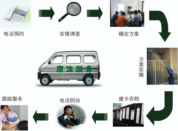 本公司服務(wù)流程,就是從接觸客戶開始到應(yīng)客戶要求,最終得到客戶滿意所進(jìn)行有害生物防治、管理的一整套工作程序,也是長(zhǎng)期綜合治理的系統(tǒng)工程,需客戶配合。其服務(wù)流程包括:客戶接觸、實(shí)地勘查、確定方案、施工作業(yè)、存卡建檔、效果評(píng)價(jià)、殺滅報(bào)告書、監(jiān)督監(jiān)測(cè)、服務(wù)回訪九個(gè)方面。